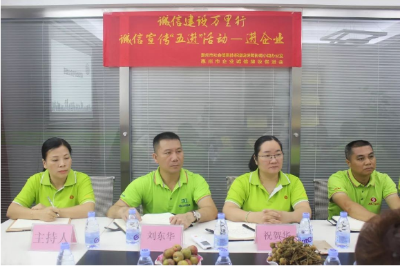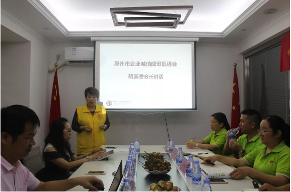 2019年7月10日上午,惠州市企业诚信建设促进会会长胡美香女士携同秘书处到我司举办【诚信建设万里行】诚信宣传-“进企业”活动,开展诚信主题宣讲。